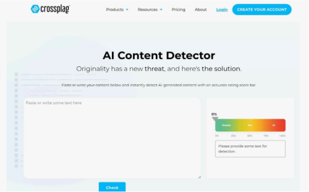 Crossplag — многоязычный детектор, сочетающий проверку на плагиат с базовыми настройками для обнаружения ИИ.
