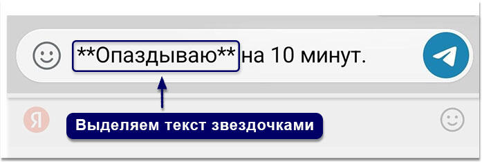 - Отправьте сообщение — выделенная часть станет жирной.