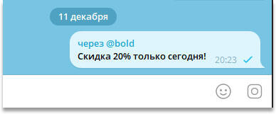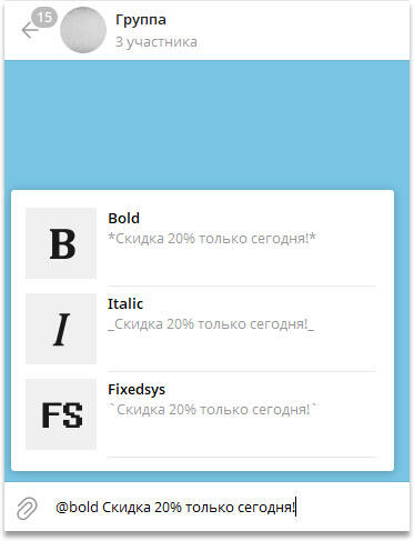 Совет. Если использовать команду @bold прямо в групповой беседе, сообщение отправится сразу, но над ним появится пометка «через @bold», видимая всем: