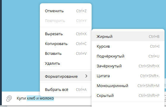 Если вы много печатаете, то вот как в Телеграме написать жирным шрифтом максимально быстро — достаточно одного нажатия: