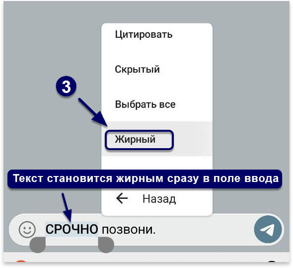 Как сделать жирный шрифт и выделить текст в Телеграме