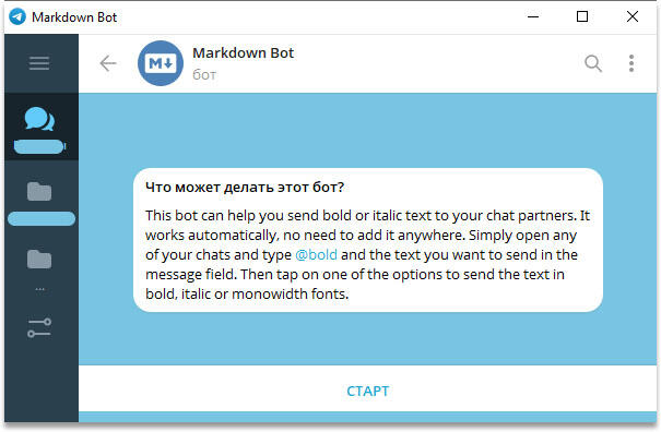 - Найдите в поиске мессенджера бота @bold и откройте с ним переписку.