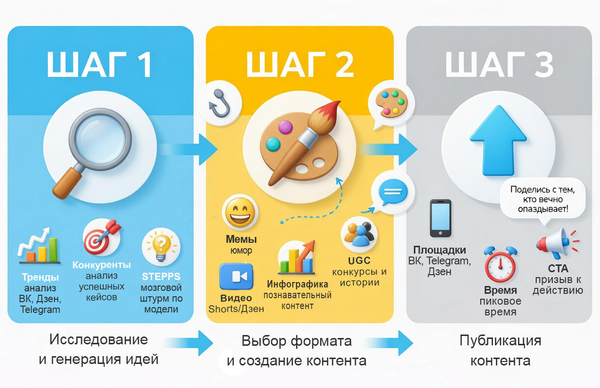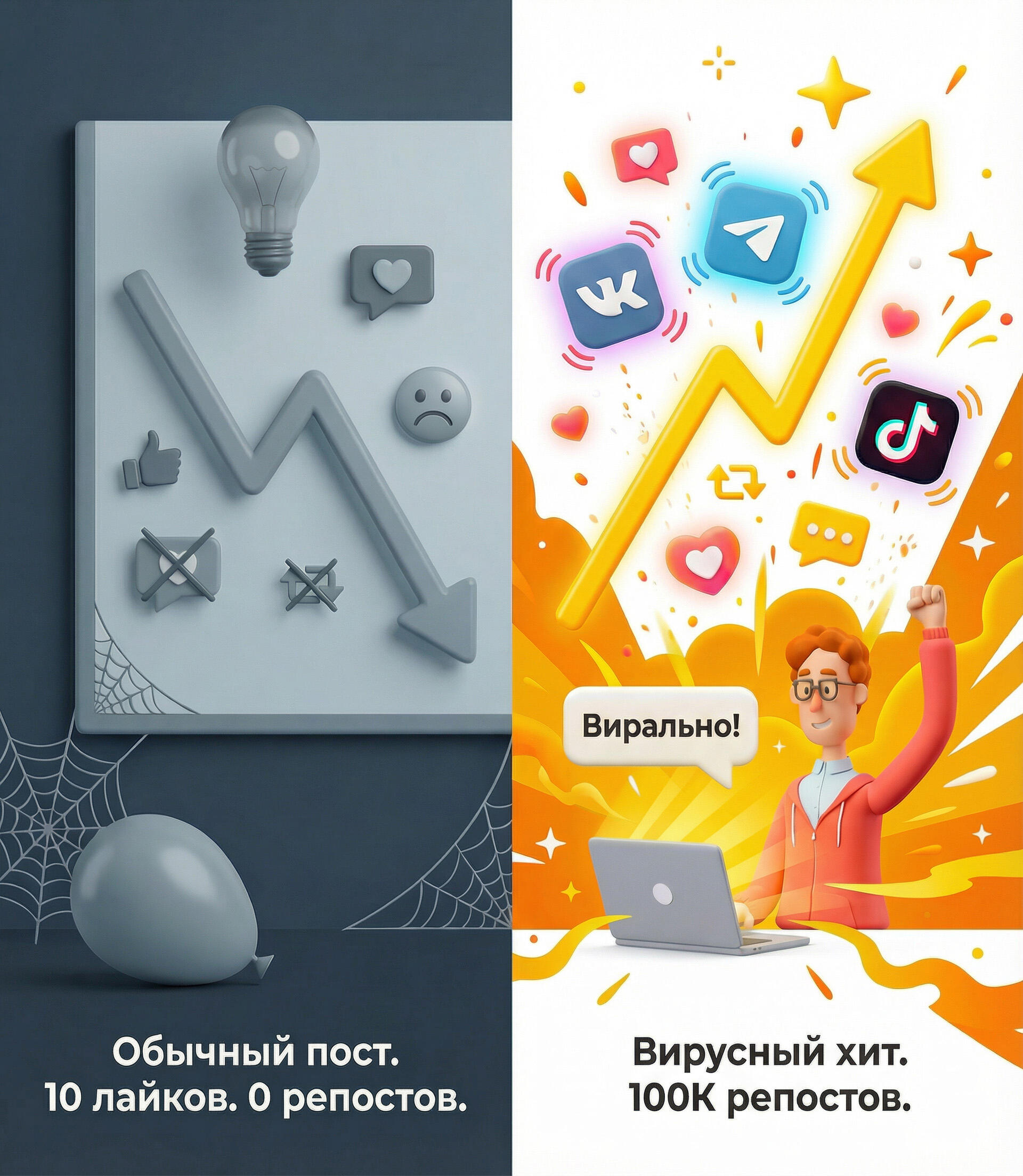 Потому что вирусным становится не то, что смотрят, а то, чем делятся. Этот феномен основан не на слепой удаче, а на глубинном понимании человеческой психологии. Эта статья для тех, кто хочет понять, что значит виральный контент. Мы рассмотрим, как сознание пользователя принимает решение поделиться публикацией, как работает адаптированная для Рунета модель STEPPS и какие конкретные шаги ведут от идеи к виральному эффекту, помогая избежать распространённых ошибок.