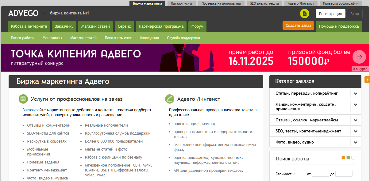 Advego — известная платформа для фрилансеров, специализирующаяся на работе с текстами и контентом, которая также может быть использована для продажи стихов.