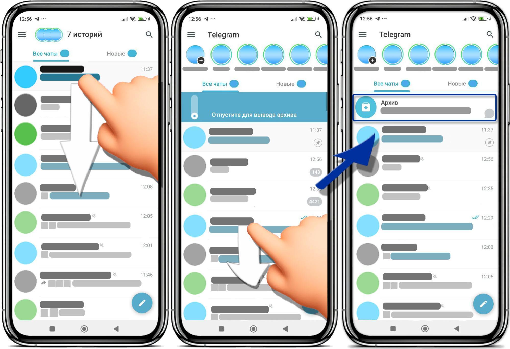 Чтобы найти архив в мобильном приложении, потяните список чатов вниз, пока вверху не появится папка «Архив».