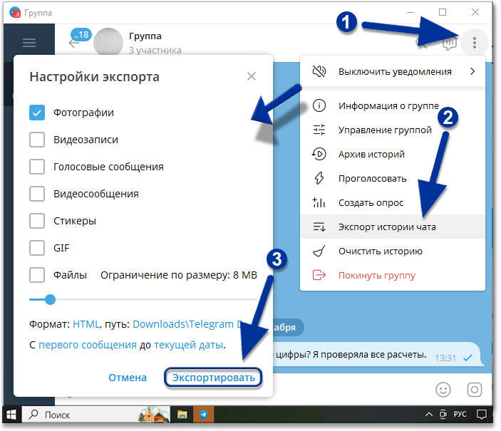 Учтите, что экспорт недоступен в первые сутки после авторизации, не включает секретные чаты, требует подтверждения с других устройств. Процесс может занимать от нескольких минут до нескольких часов.